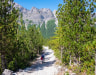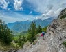 After breakfast, luggage is transported by packhorse, allowing for a more manageable ascent. The trail begins with a steep forest section before opening into wider alpine pasture. Large glacial rocks dot the landscape, and the path narrows as it approaches the pass.