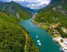 The ferry journey is unhurried, passing through narrow gorges and wider stretches. Scenery includes steep rocky slopes, scattered woodland, and occasional small settlements near the shoreline. The water is generally calm, and the route offers extended periods of quiet with few commercial facilities on board.